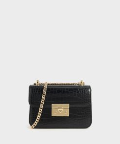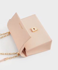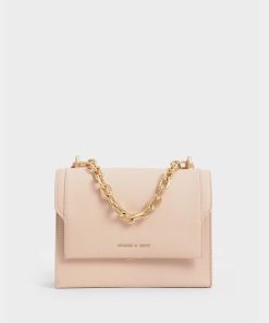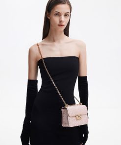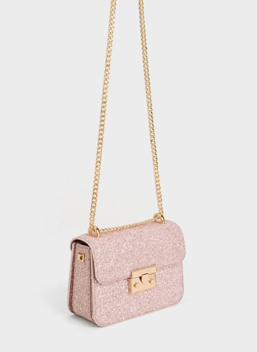Made for dinner dates, party nights, and special occasions, this glittered handbag, featuring a stunning blush-pink exterior, is a dream come true for pink lovers. The glittering surface adds a touch of modern-day Barbie charm that you will instantly embody the moment you sling it on. Shiny gold-toned hardware perfectly complements the look, and the chain handle can be worn single- or double-strapped, offering versatile styling options.