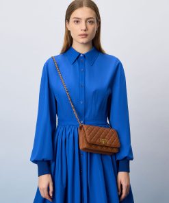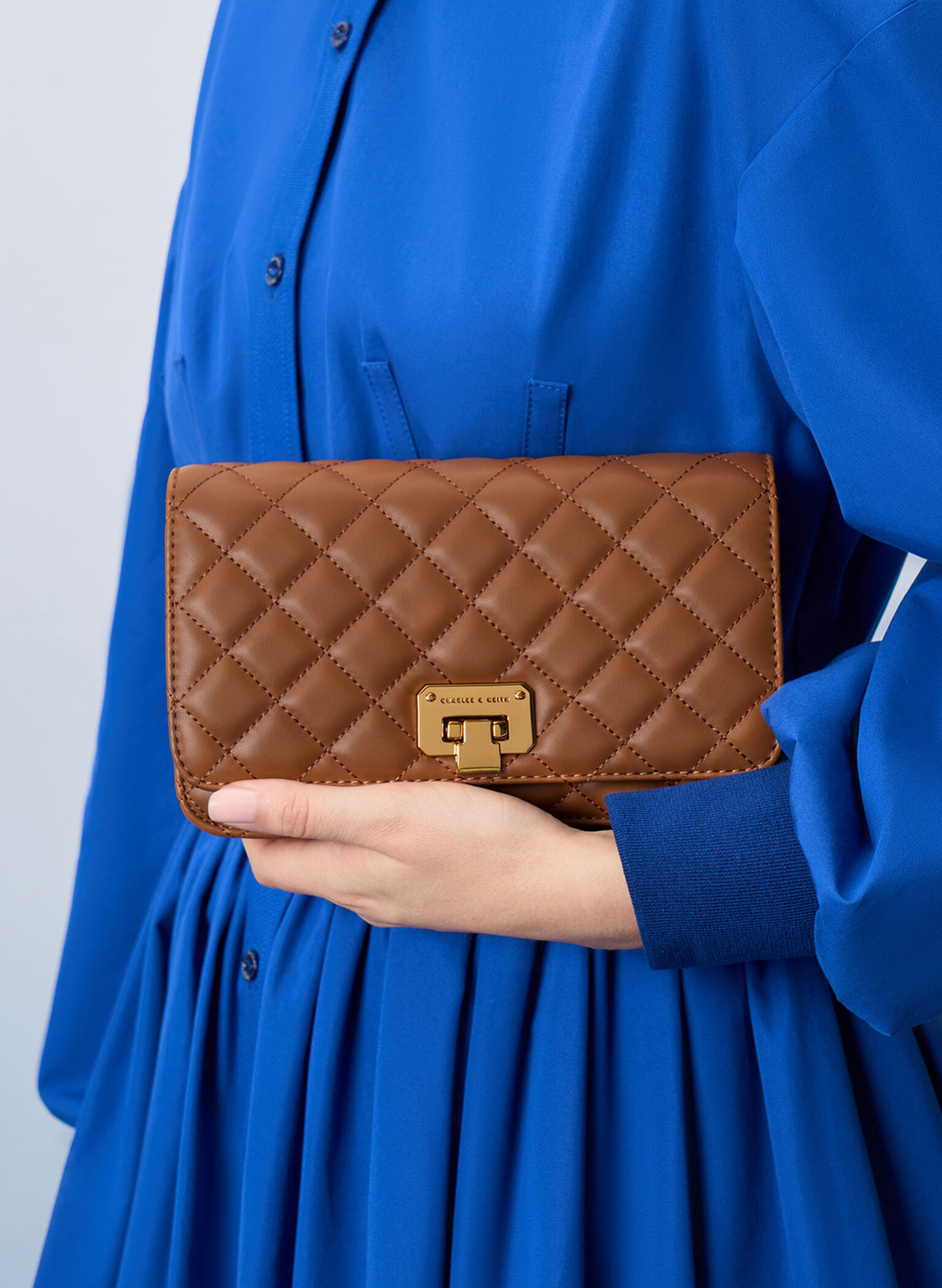 From the padded texture to the exquisite chocolate-brown finish, this push-lock quilted clutch definitely deserves a spot in your wardrobe. We are also loving the carrying versatility this gem offers — use it as a shoulder bag with the chain handle or detach the strap to use it as a clutch. Let it complete a satin wrap-dress and stiletto pumps ensemble on your next girls’ night out.